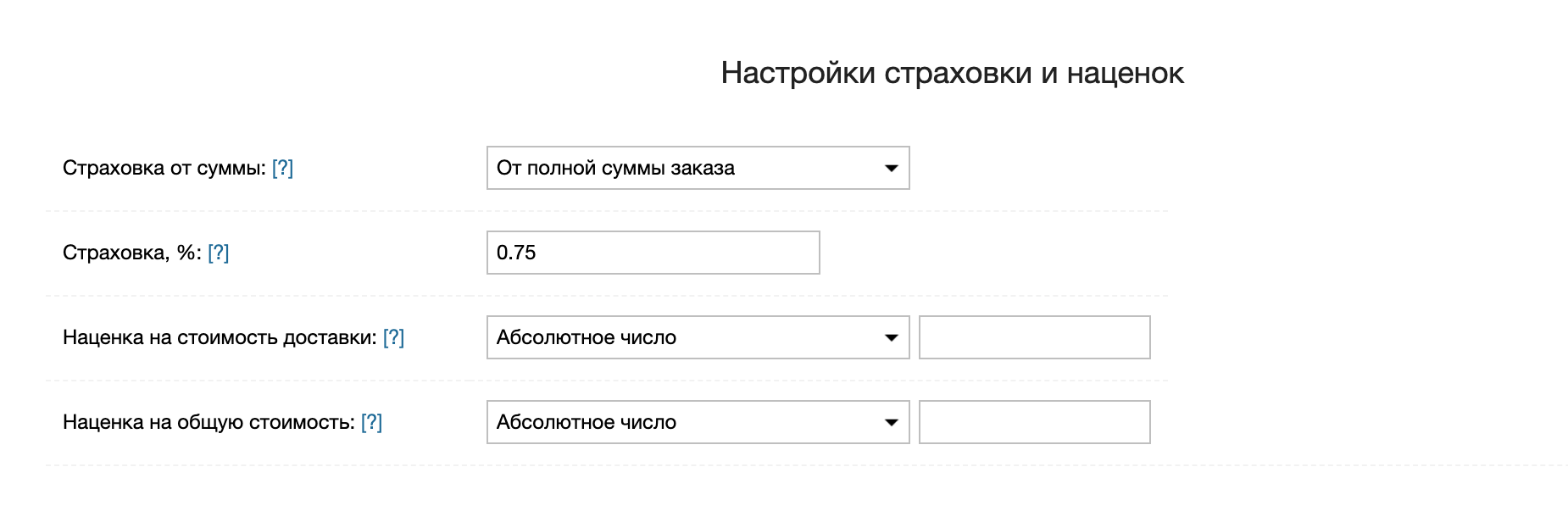 Этот раздел настроек приложения позволяет задать наценки на стоимость доставки, общую стоимость, а также выбрать базу для расчета страховки.