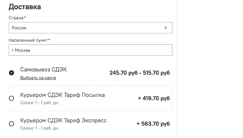 Если у точки ПВЗ или постамата доступно несколько тарифов пользователь может выбрать удобный в зависимости от цены и сроков.