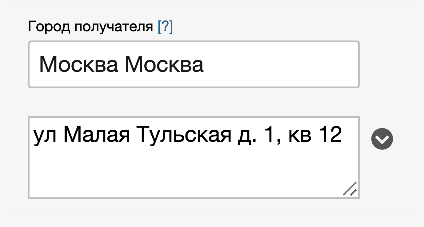 Важно заметить, что город определяется из адреса в InSales и сопоставляется с базой городов СДЭК. База городов InSales представляет собой базу КЛАДР, в то время как города в СДЭК имеют собственную структуру. Например, в СДЭК есть города Бутово, Железнодорожный, Старые Химки и т.д, которых нет в базе КЛАДР РФ. Правильность распознавание города из адреса не гарантируется, поэтому при оформлении стоит уделять отдельное внимание этому полю.